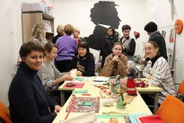 Для самых маленьких посетителей «Ночи искусств» была организована площадка «Забавы детворы». Малыши мастерили матрешек, а ребята постарше и их родители участвовали в мастер-классе художника и керамиста Ирины Сельмен. Они изготовили удивительные глиняные домики, украсив их особой техникой отпечатков из вязаного кружева.