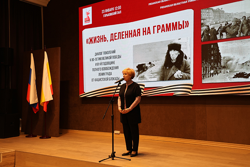 Наталья Николаевна Гришина, директор Рязанской областной универсальной научной библиотеки, председатель Общественной палаты Рязанской области и областного Совета женщин, заслуженный работник культуры Российской Федерации, почетный гражданин Рязанской области, в своем выступлении отметила: «Мы с вами унаследовали дух ветеранов-блокадников, их силу, их готовность жертвовать собой. И это наше величайшее достояние, это наша кровь, наш генетический код. На нас лежит ответственность сохранить эту Победу, эту историческую правду».