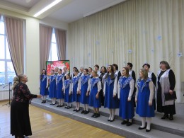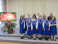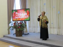 Ведущая и руководитель хора Марина Сарахманова поздравила всех собравшихся с Новым годом и Рождеством Христовым.