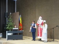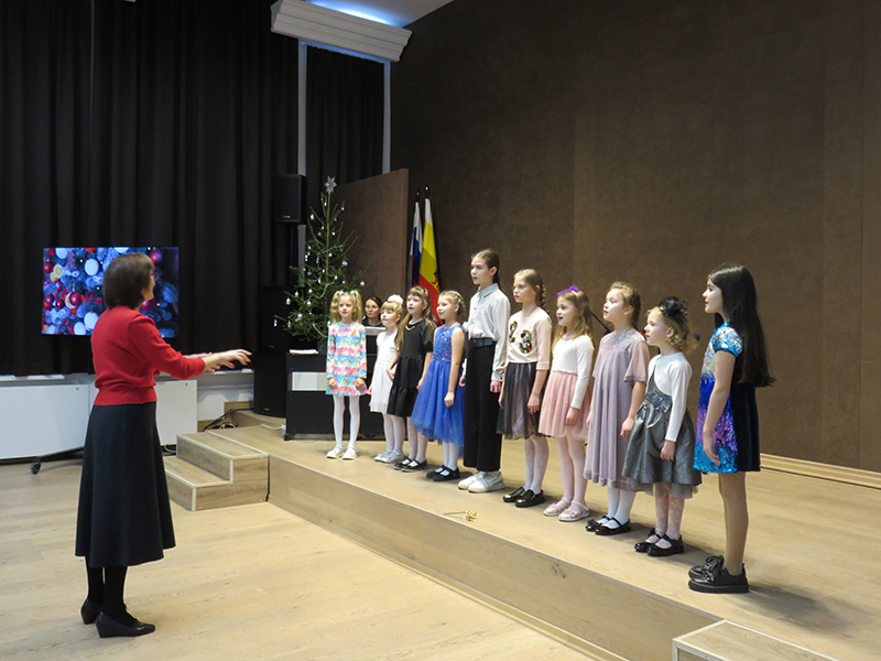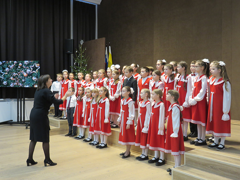Праздничное представление украсили выступления хоровых коллективов школы и солистов под руководством преподавателей Елены Романовой, Татьяны Цыганковой и Надежды Юдаевой. Хор 1-го класса «Бусинки» (руководитель Т.В. Цыганкова) исполнил песни З. Роот «Что за чудо!», польскую народную – «Новый год», А. Ростовской «У кота» из цикла «Три хора на народные тексты» и А. Вискова «Здравствуй, добрый дедушка Мороз». Младший хор «Капель» (руководитель Н.Г. Юдаева) – песни Я. Дубравина «Всюду музыка живет»,