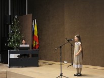 Целый калейдоскоп прекрасных песен прозвучал в сольном исполнении учащихся школы, которые зарядили всех новогодним настроением! Это были песни Е. Подгайца «Под Новый год», Л. Бирнова «Елочка-краса», Н. Пескова «Что под елкой спрятано?», Л. Абеляна «Новогодняя песенка», А. Филиппенко «Саночки», Ю. Чичкова «Снежная сказка зимы», В. Шаинского «Дед Мороз» и другие.