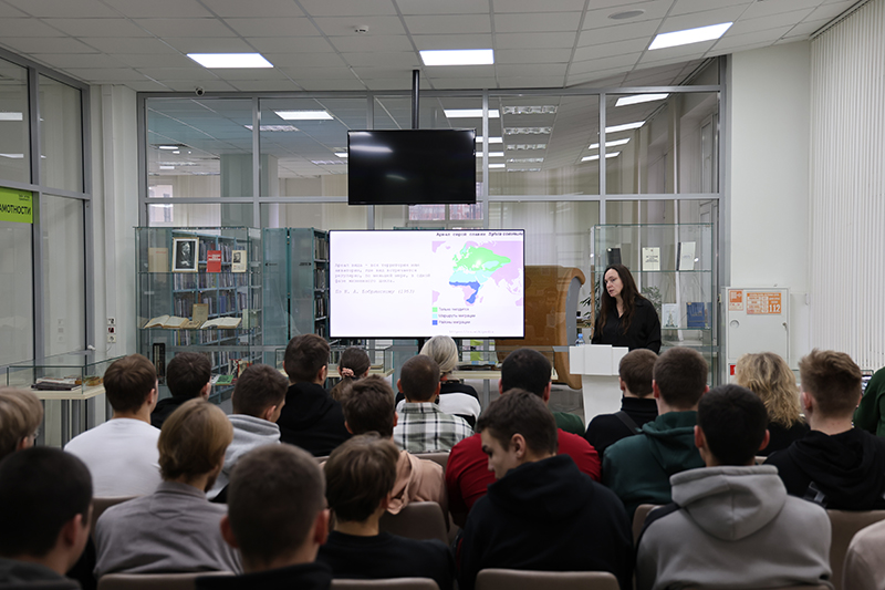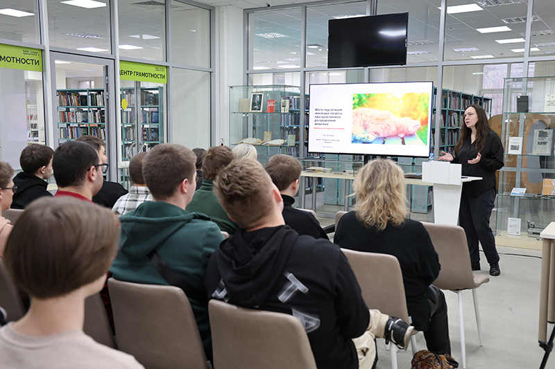 В библиотеке состоялась популярная лекция, организованная совместно с Национальным парком «Мещера». Перед студентами Рязанского политехнического колледжа и читателями библиотеки выступила начальник отдела науки Национального парка Алина Косякова с темой «Место под солнцем: как животные используют окружающее пространство».