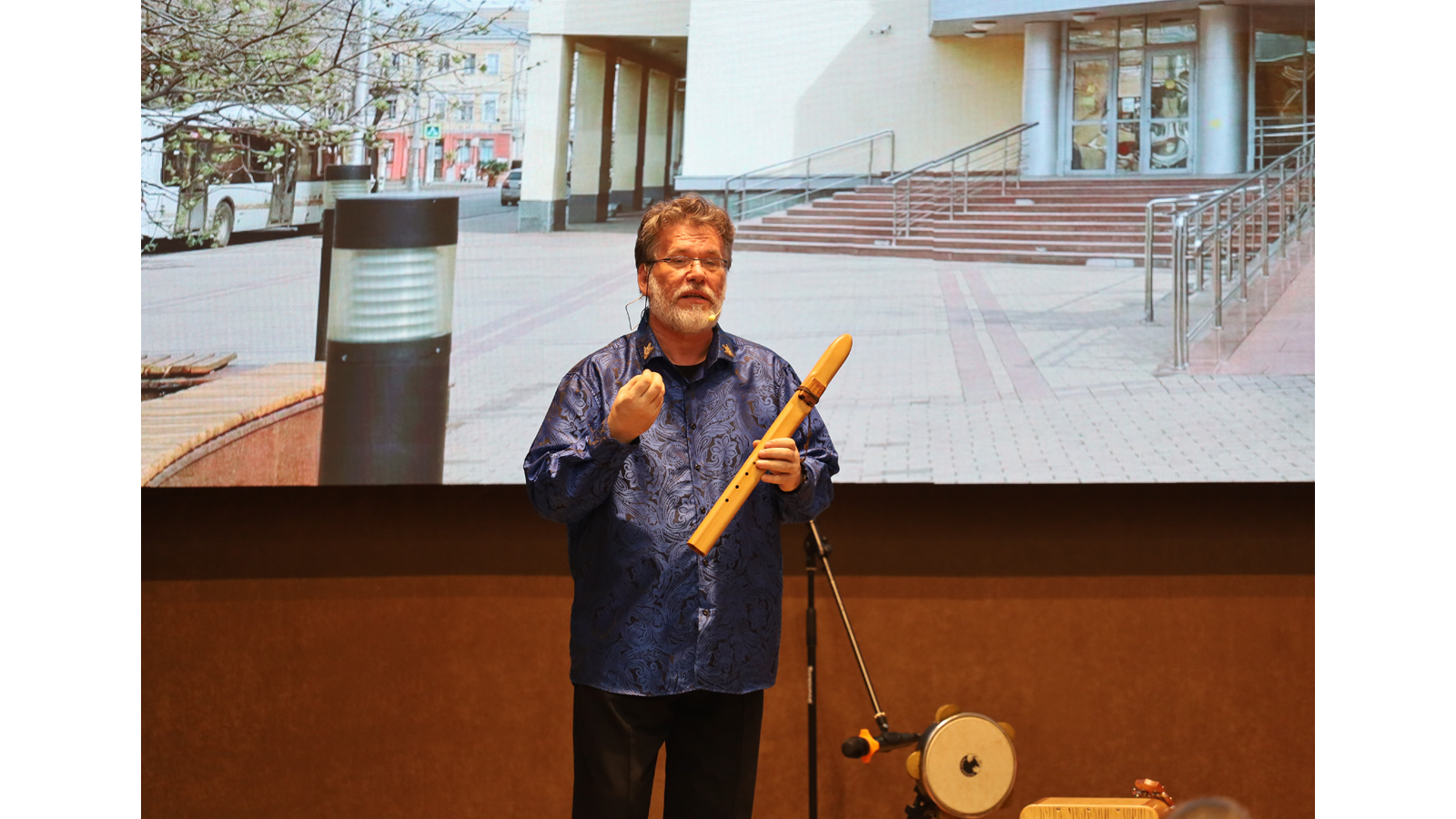 Участники встречи окунулись в мир животных благодаря увлекательному музыкальному путешествию. Украшением концерта стало знакомство с разнообразными народными духовыми инструментами: целое семейство свирелей, а также окарина и зафун, которые сменяли друг друга от песни к песне. Участники встречи также услышали, как звучат укулеле, бас-гитара, аккордеон, кахон и дарбука. Юным зрителям очень понравился увлекательный рассказ об этих музыкальных инструментах.