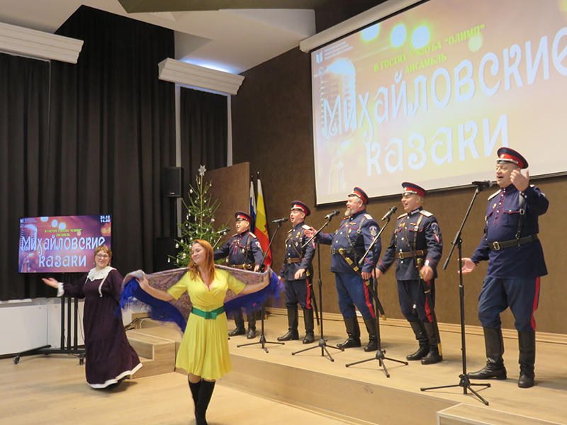 Под занавес уходящего года в клубе «ОЛИМП» Горьковской библиотеки состоялся концерт ансамбля «Михайловские казаки» Михайловского станичного казачьего общества (походный атаман Виктор Проходцов, художественный руководитель Александр Воронин, солисты Сергей Самошин, Виктор Проходцов, Федор Пекур).