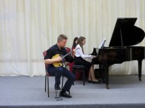 Настоящим подарком всем присутствующим стало выступление бывших учеников школы, а ныне студентов музыкального колледжа им. Г. и А. Пироговых Валентина Акимова и Марьяны Плюхиной, а также преподавателя школы Софии Николаевны Мироновой, которая и завершила программу.