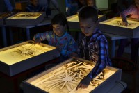 Детскую площадку фестиваля национальной книги «Читающий мир» посетил Театр песка «Брим». Руководители театра провели для ребят мастер-класс по песочной анимации.