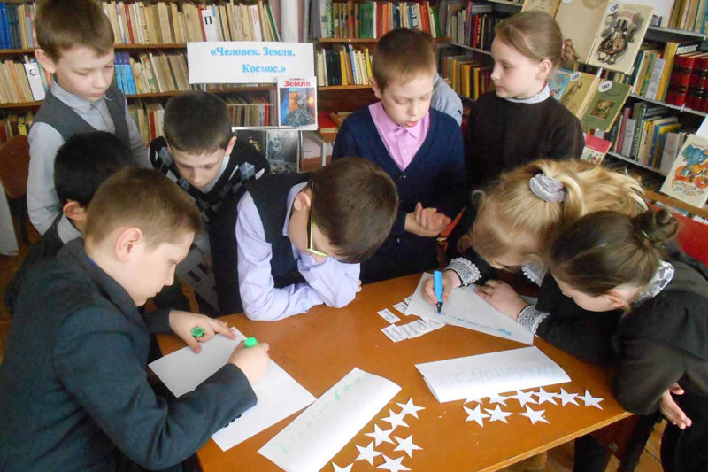 12 апреля в Елинской сельской библиотеке Захаровского района прошло мероприятие «Космическое путешествие – дорога в космос» для учеников 3 класса Захаровской средней школы № 2. Библиотекарь Наталья Калинина рассказала ребятам о великих людях С.П. Королеве, К.Э. Циолковском, Ю.А. Гагарине.