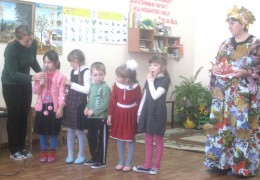 Ребятишки отгадывали загадки, собирали в корзинки «листики» и «грибочки», рассказывали стихи про осень и показывали свои рисунки.