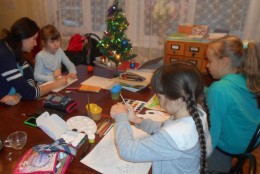 В начале встречи детям показали Деда Мороза в виде старинной елочной игрушки, затем рассказали, почему елочку принято наряжать новогодними гирляндами, и чем отличается Рождественская звезда от обычных звезд на небе. После беседы ребята приступили к участию в конкурсе. Готовые рисунки разместили на стенде «Волшебная кисточка».
