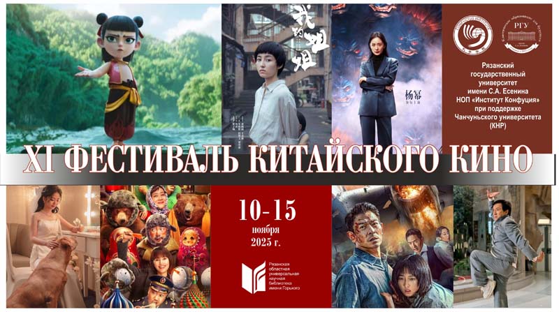 ХI Фестиваль китайского кино пройдет в библиотеке имени Горького с 10 по 15 ноября. Организатором фестиваля выступает научно-образовательное подразделение «Институт Конфуция» Рязанского государственного университета имени С.А. Есенина при поддержке Чанчуньского университета (КНР).