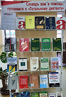 В зале периодических изданий открылась выставка, посвященная подготовке к «Тотальному диктанту». «Тотальный диктант» – ежегодная культурная акция в форме добровольного диктанта для всех желающих, независимо от возраста, пола, образования, профессии, вероисповедания, интересов и политических взглядов.