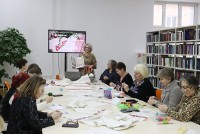 В преддверии Единого дня народных промыслов и ремёсел в библиотеке имени Горького состоялся мастер-класс по кружевоплетению и вышивке от преподавателей Рязанского филиала Высшей школы народных искусств Дарьи Юрьевны Христолюбовой и Елены Александровны Меркушкиной.