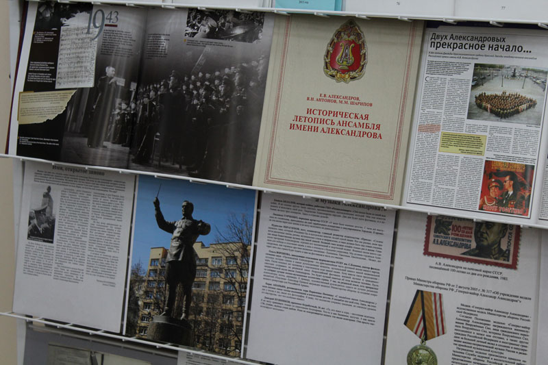 Читатели смогут познакомиться с уникальными мемуарами – «Исповедь александровца». Книга написана музыкантом Юрием Штруновым, проработавшим много лет в ансамбле песни и пляски, в ней содержатся факты, имеющие для творческого коллектива историческую значимость. Уверены, что никого не оставит равнодушными довоенное издание (1938 г.) нот песен Александрова из архива отдела. Статьи из газет и журналов расскажут об истории создания песни «Священная война», о судьбе музыки гимна РФ, о вкладе Александра Васильевича Александрова в мировую музыкальную культуру