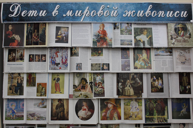 Представленные на выставке репродукции из альбомов, книг и журналов доставят читателям радость общения с прекрасным, близким и дорогим всем нам миром детства. Здесь можно увидеть самые разнообразные сюжеты из жизни маленьких героев: дети в семье, с родными, в школе, на природе, среди своих любимых игрушек, захваченные чтением, рисованием, игрой. Поклонников прекрасного ждет встреча с великолепным альбомом «Мой ангел», который вышел в издательстве «Белый город» и отпечатан в Италии. В нем собрано около 450 произведений отечественных живописцев, репродукции сопровождены стихами известных русских поэтов и писателей на тему детства.