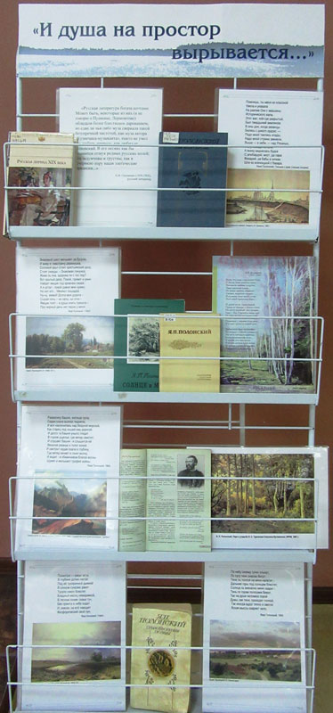 Кафедра периодических изданийВ зале периодических изданий для посетителей открыта выставка, на которой представлены сборники лирических произведений, написанных Полонским в разные годы.
