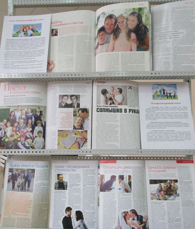 На выставке представлены статьи из журналов, рассказывающие о роли семьи в нашем обществе, воспитании детей, ценностях семейных отношений. Секреты семейного счастья просты – взаимоуважение, забота о домочадцах, доверие.
