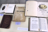 Литература, представленная на выставке, выделена в два раздела. В первый раздел вошли художественные произведения (романы, повести, стихотворения, драматические произведения), чьи даты написания (первой публикации и т. д.) являются юбилейными в 2017 году. Самым почтенным возрастом может «похвастаться» великая «Божественная комедия», которую Данте Алигьери начал писать в далеком 1307 году! Юбилеи «празднуют» «Фауст» Гете, «Горе от ума» Грибоедова, роман «Бесы» Достоевского, «Арап Петра Великого» и «Песнь о вещем Олеге» Пушкина, «Бородино» и «Смерть поэта» Лермонтова, «Отверженные» Гюго, «Овод» Войнич, «Пер Гюнт» Ибсена, «Школа злословия» Шеридана и многие другие произведения. Сразу несколько книжных юбиляров у Л.Н. Толстого – «Детство», «Исповедь», знаменитая «Анна Каренина»; у Чехова – «Палата № 6», «Каштанка», «Архирей», «Мужики»; у Тургенева – «Вешние воды», «Отцы и дети», «Дым», «Сон» и «Муму».