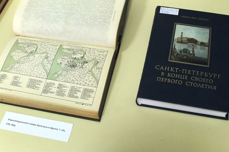 На выставке представлены издания, знакомящие читателей с историей основания города, его развитием, жизнью и культурой. Представлены исторические карты Санкт-Петербурга 1705 и 1725 годов, наглядно показывающие, как быстро рос и менялся «град Петра».