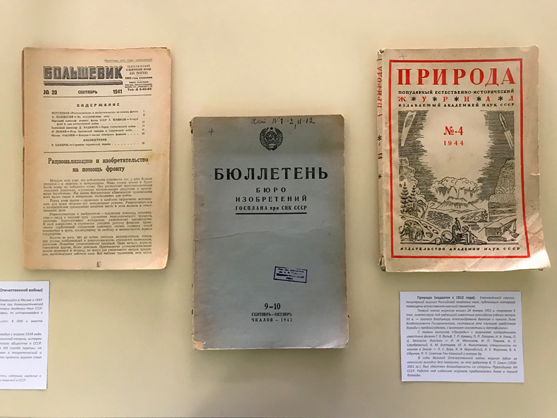 Помимо официальных изданий и периодической печати общего характера в тревожные военные годы выходили в свет и научные, специальные журналы. Посетители выставки увидят одно из старейших естественно-научных изданий России – журнал «Природа», выходивший без перерыва в годы Великой Отечественной войны. Работа над изданием журнала продолжалась даже в период блокады.