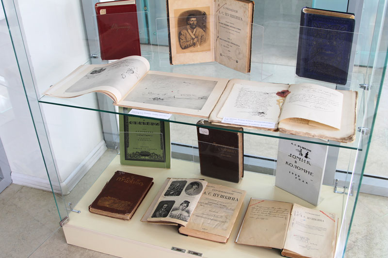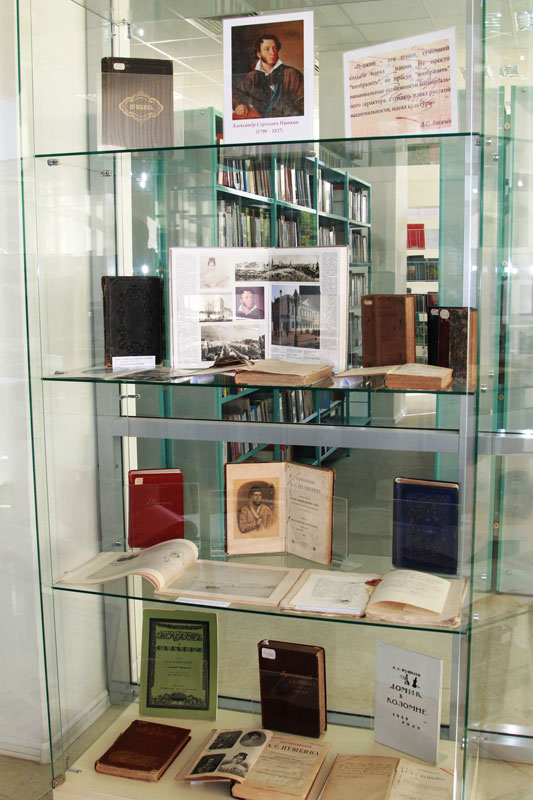 На выставке представлены прижизненные и посмертные издания поэта. Наибольший интерес представляют сохранившийся третий том собрания сочинений 1838-1841 гг., редактором которого был В. Жуковский; «Сочинения А.С. Пушкина»; автографы Пушкина; воспоминания современников; июльский номер журнала «Вестник Европы» за 1880 г., где опубликовано первое стихотворение пятнадцатилетнего А.С. Пушкина «К другу стихотворцу».