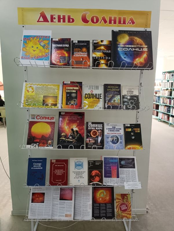 На выставке «День солнца» в универсальном читальном зале представлена литература о Солнце, космосе и планетах нашей вселенной.