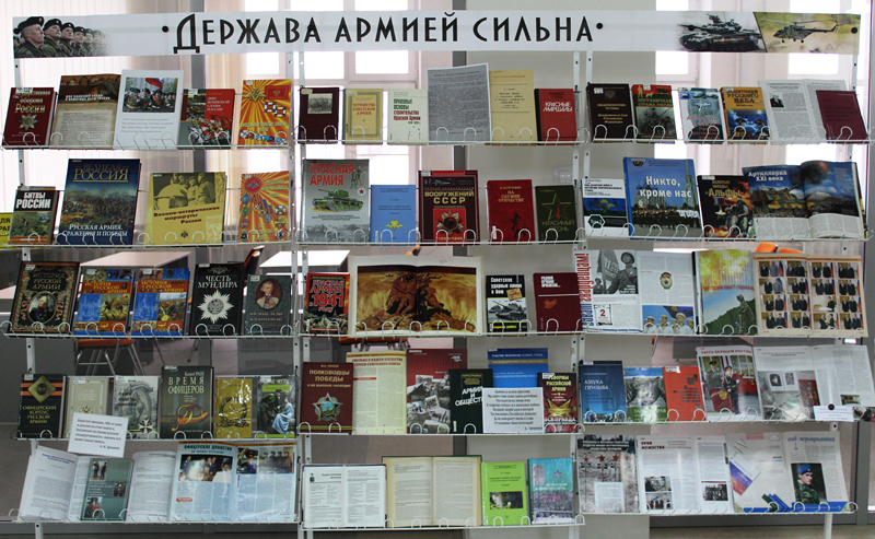Книги, представленные на выставке, познакомят читателей с историей создания Российской армии и ее славными победами, расскажут о великой миссии, которую несет русский солдат, о почетной обязанности молодых людей служить в современной армии.