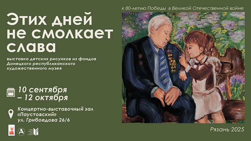 Ко дню 80-летия Великой Победы Донецкий республиканский художественный музей провел Всероссийский творческий конкурс детских рисунков «Этих дней не смолкает слава». Более 80 работ юных художников из Донецкой Народной Республики (художественные школы, отделения искусств, студии культуры), а также из Тихвина (Ленинградская обл.), Киселёвска (Кемеровская обл.), Симферополя (Республика Крым) и Стаханова (Луганская Народная Республика) были представлены для участия в конкурсе.