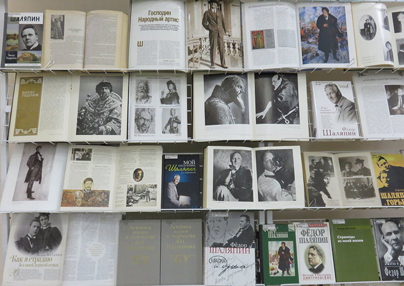 На выставке представлена литература о его жизненном пути и творчестве, нотные сборники, статьи из периодики, а также художественные альбомы с иллюстрациями портретов Шаляпина кисти Валентина Серова, Константина Коровина, Бориса Кустодиева, Александра Головина.