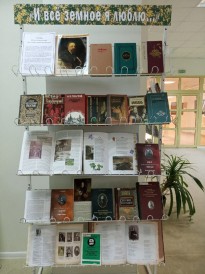 На выставке, подготовленной к юбилею писателя, представлены книги и статьи, посвященные творчеству А.К. Толстого, а также его произведения.