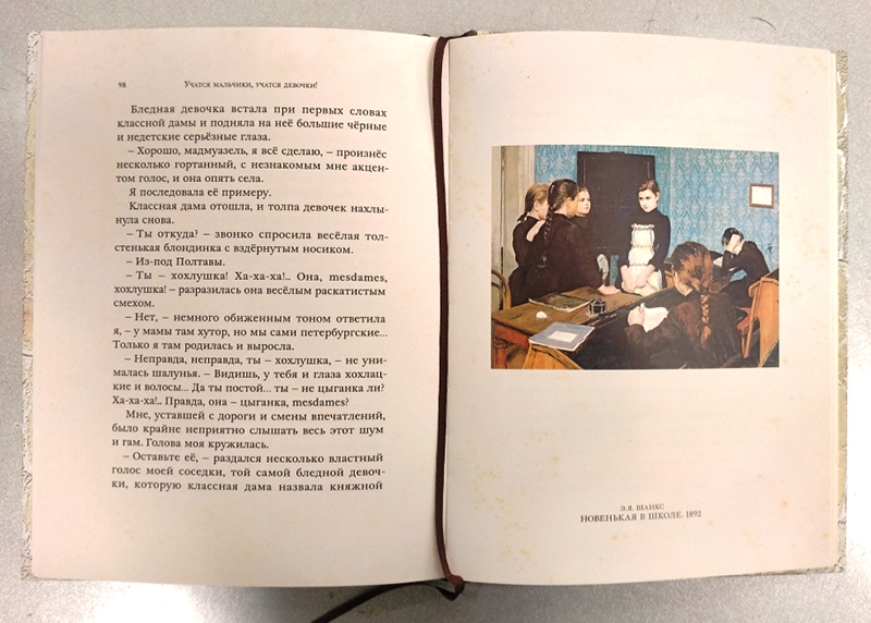 Эти реалии отражены в сборнике «Учатся мальчики, учатся девочки!», в который вошли произведения Льва Толстого, Лидии Чарской, Марии Ростовской, Петра Дурова. Особенность книги — иллюстрации, созданные на основе картин русских художников Н. П. Богданова-Бельского, В. Е. Маковского, С. А. Коровина и других. Сборник вышел в серии «Книга с историей», где каждое издание оформлено в стилистике конца XIX – начала XX века: с имитацией старинного переплёта, потёртостей и отметин времени. Эти книги словно пришли к нам из уютной семейной библиотеки.