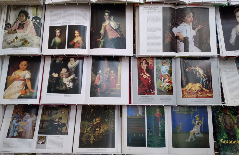Представленные на выставке репродукции из альбомов, книг и журналов помогут читателям окунуться в безмятежный мир детства.