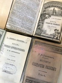 Многие книги, представленные на выставке, входили в собрания, принадлежавшие известным общественным деятелям XIX – начала XX веков: вице-адмиралу, кругосветному мореплавателю, ученому и писателю Василию Михайловичу Головнину (1776–1831), историку, этнографу, лексикографу и фольклористу Николаю Васильевичу Закревскому (1805–1871), археологу, историку, основателю и правителю дел Рязанской ученой архивной комиссии Алексею Васильевичу Селиванову (1851–1915) и другим. Многочисленные владельческие записи и экслибрисы на книгах свидетельствуют о всенародном интересе к творчеству Карамзина и отражают заслуженно высокую оценку деятельности писателя в глазах современников и потомков.