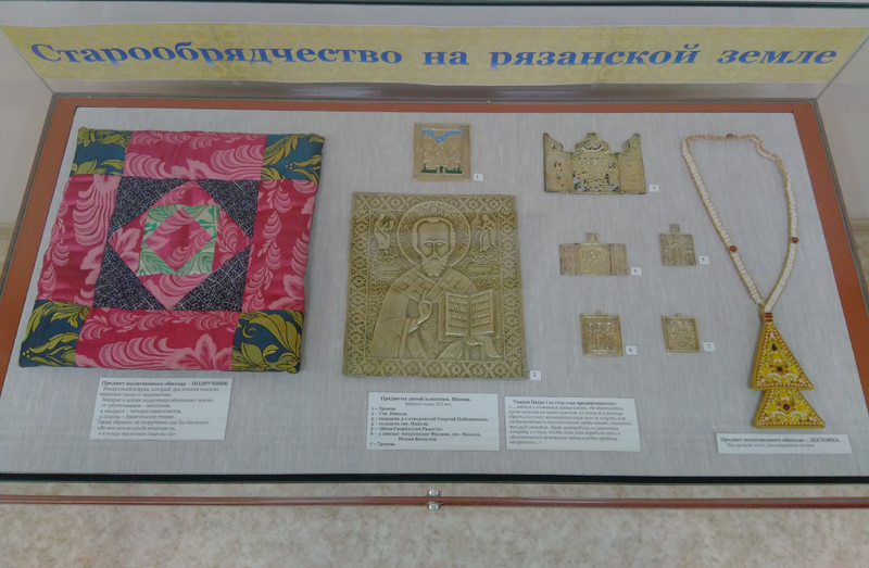 На выставке представлены книги, подаренные нашей библиотеке настоятелем Рязанского Успенского старообрядческого храма протоиереем Александром Масловым, книги о старообрядческих общинах и храмах Рязанской земли, о мучениках веры, об истоках старообрядчества.