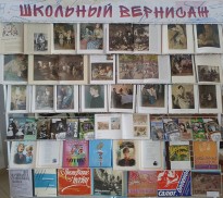 На выставке представлены книги, альбомы, нотные сборники, статьи из периодических изданий, а также видеокассеты и грампластинки с любимыми песнями об учителях и школе.