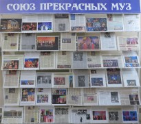 На выставке представлены статьи из периодических изданий, фотографии, буклеты.