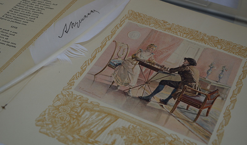 На выставке читатели увидят «Сочинения А.С. Пушкина» изданные в 1881 г., уникальное издание «Евгения Онегина» 1918 г. с иллюстрациями Е.П. Самокиш-Судковской. Привлекут внимание посетителей отдельные произведения и необычная коллекция – миниатюрная пушкиниана. А для самых маленьких наших читателей – удивительные сказки Пушкина с яркими иллюстрациями.