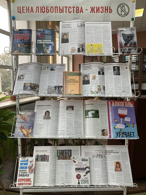 На выставке, работающей в зале периодических изданий, представлены книги и журнальные публикации, посвященные последствиям алкоголизма и профилактике этого пагубного пристрастия.
