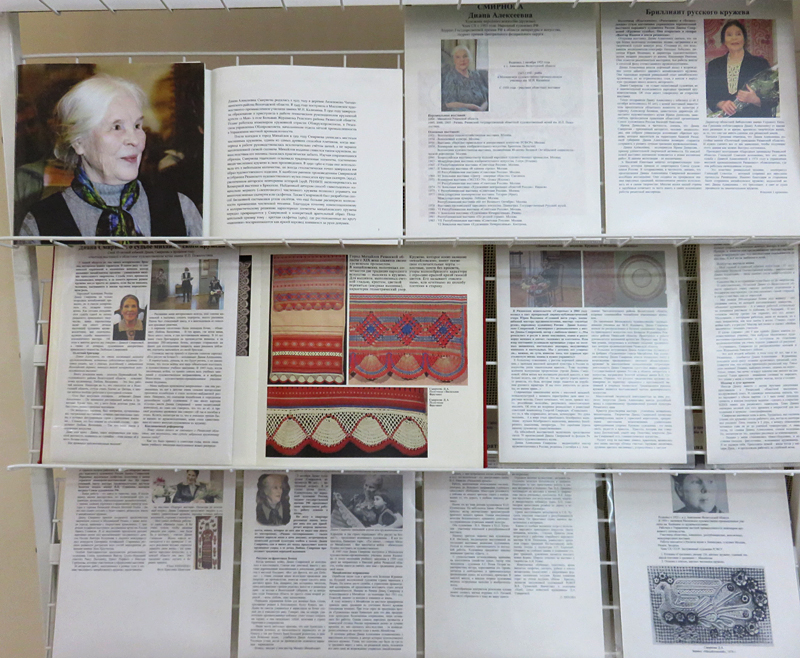 На выставке представлены книги, каталоги выставок, статьи из периодических изданий о творчестве крупнейшего мастера кружевоплетения в России.