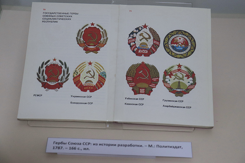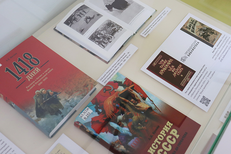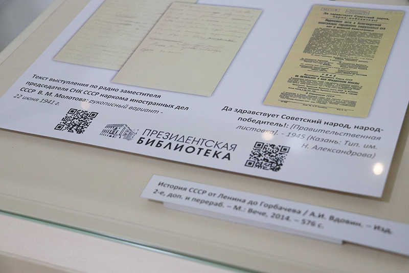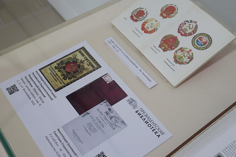 В витринах представлены книги из фондов Рязанской областной библиотеки имени Горького и Президентской библиотеки имени Б.Н. Ельцина.