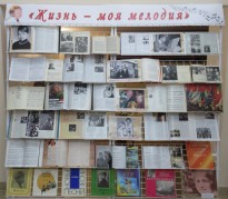 На выставке представлены книги и сборники, статьи из периодики, а также коллекция пластинок с песнями разных лет.