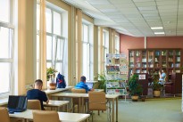 Читальный зал периодических изданий расположен на втором этаже главного здания библиотеки (новый корпус).