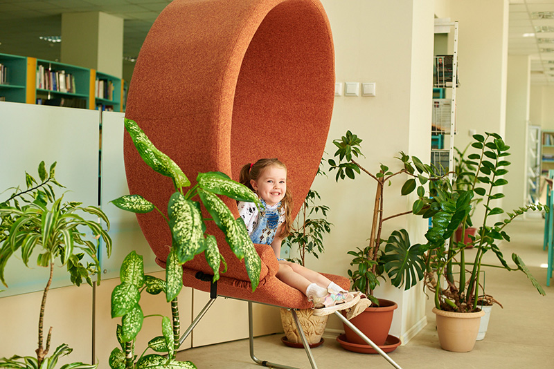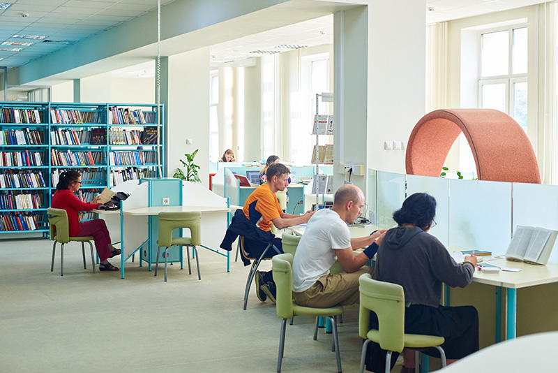 В зале расположены комфортные места для работы читателей, зона Wi-Fi. Имеются зоны отдыха, в которых можно провести свободное время в общении с друзьями.