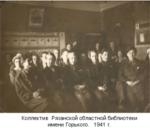 Для сотрудников библиотеки проходили занятия по противовоздушной химической обороне (ПВХО) и светомаскировке. Библиотека организовывала выставки, литературные вечера, лекции. Одновременно шли работы над тематическими картотеками «Знатные люди нашей области», «Рязанцы — участники войны». Библиотекари Рязанской области развернули формирование библиотечек для воинских частей и госпиталей, библиотек районов страны, освобожденных от фашистской оккупации. Велась лекционная, информационная и агитационная работа с населением. Число посетителей в это время достигало 12 тысяч в год.