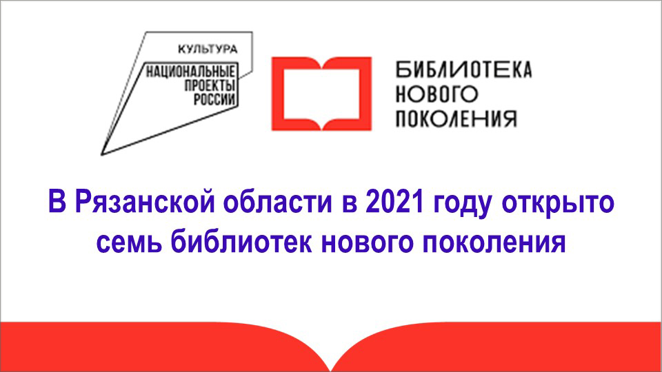 В 2020 году результатом деятельности регионального проектного офиса национального проекта «Культура» (руководитель проектного офиса – директор библиотеки Н.Н. Гришина), стало открытие в Рязанской области четырех модельных библиотек нового типа: Ижевской сельской библиотеки Спасского района, Центральной детской библиотеки Рыбновского района, Центральной библиотеки им. Л.А. Малюгина в г. Касимове и Центральной городской библиотеки им. С.А. Есенина г. Рязани. Читать далее