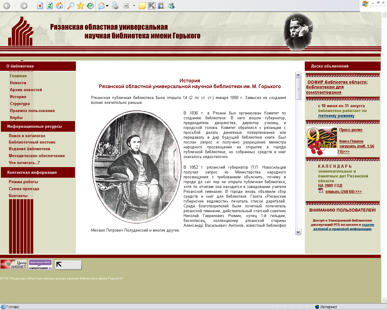 Идея устройства в городе Рязани публичной библиотеки возникла в 1830 г.