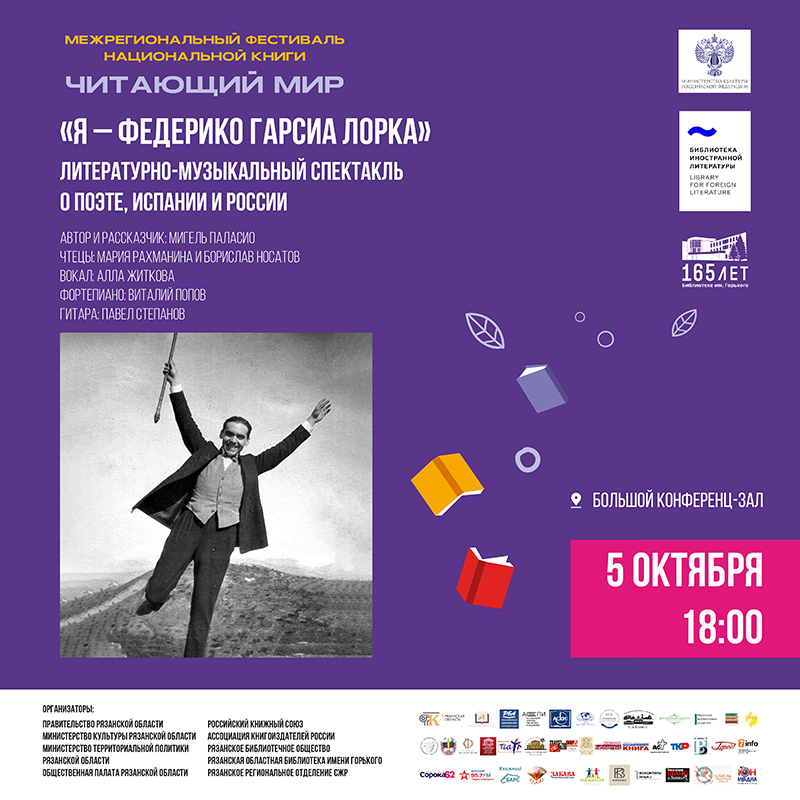 Уроженец Андалузии, «овеянной римскими и палестинскими ветрами», Лорка начал и завершил свой звездный путь в Гранаде, красивейшем городе с мавританской крепостью Альгамбра. Его прославили стихотворные сборники «Поэма о канте хондо», «Цыганское романсеро», «Поэт в Нью-Йорке», «Диван Тамарита» и «Сонеты темной любви», пьесы «Кровавая свадьба», «Йерма» и «Дом Бернарды Альбы». Яркими событиями жизни Федерико стали дружба с его alter ego художником Сальвадором Дали, гастроли по Испании с лекциями и собственным студенческим театром, путешествия в США и Латинскую Америку. А еще – особая связь с Россией, куда он непременно поехал бы, если бы не погиб в самом начале гражданской войны в Испании.