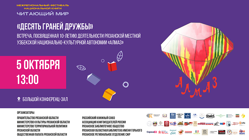 НКА «Алмаз» ‒ давний друг и партнер нашей библиотеки. В рамках проекта «Искусство жить вместе» много лет совместно проводятся мероприятия, способствующие сохранению и укреплению многовековой дружбы русского и узбекского народов: круглые столы, литературно-музыкальные вечера, уроки памяти, поэтические чтения, мастер-классы.