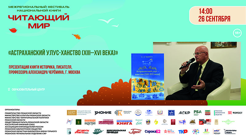 В рамках Межрегионального фестиваля национальной книги «Читающий мир» историк, писатель, профессор Александр Александрович Черёмин представит свою книгу об истории улуса и ханства в Астраханской области.
