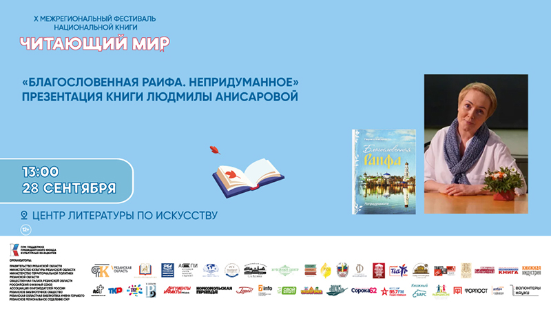 В рамках X Межрегионального фестиваля национальной книги «Читающий мир», поддержанного Президентским фондом культурных инициатив, состоится презентация книги Людмилы Анисаровой «Благословенная Раифа. Непридуманное».