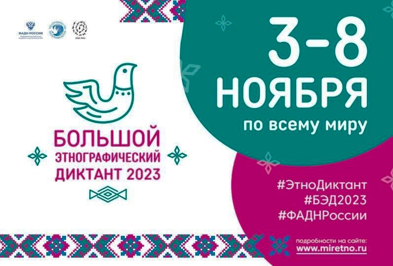 С 3 по 8 ноября 2023 года проводится ежегодная Международная просветительская акция «Большой этнографический диктант», которая знакомит участников с культурой народов, проживающих в России, а также позволяет оценить общий уровень этнокультурной грамотности.